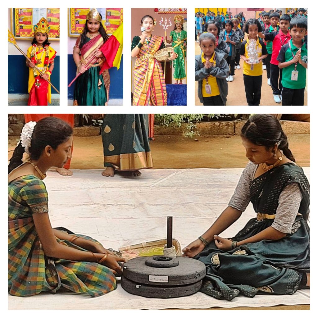 Our school celebrated the 70th Kannada Rajyotsava with great joy and pride. The celebration extended over a month through special morning assembly activities, where students enthusiastically highlighted the richness of Karnataka’s language, culture, traditions, and history.
